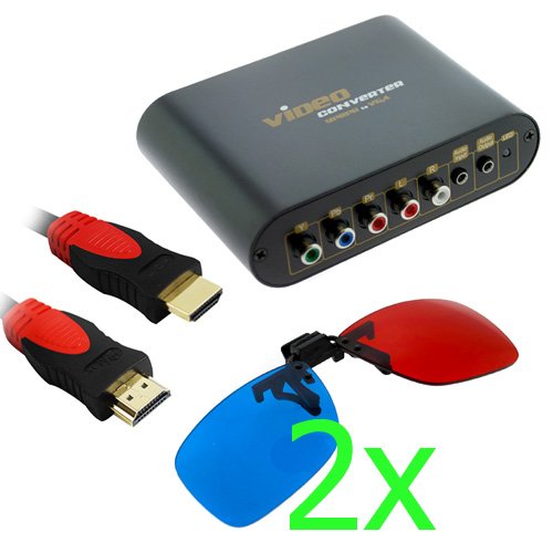 GTMax YPbPr Component to VGA Video Audio Converter + Black & Red HDMI Cable (10 feet) + Clip On 3D Glasses for 3D Movies, DVD's and Gaming that Require Red/Cyan Lenses (2Pair) Review